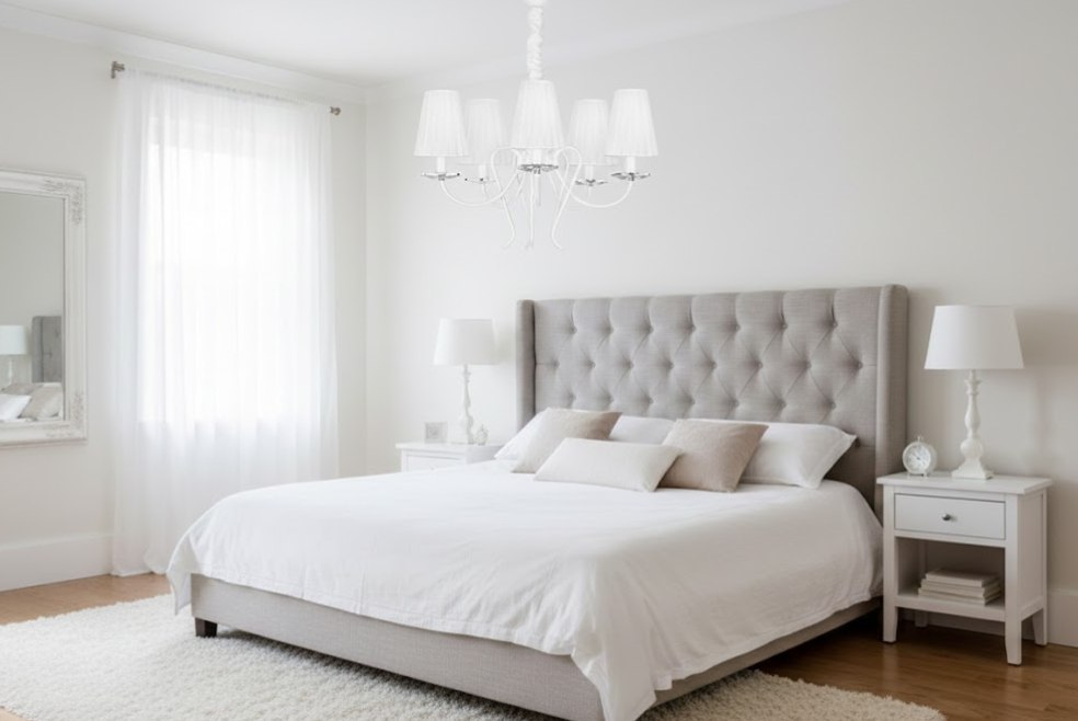 Подвесная люстра TROPEA WHITE V 5204 от польского бренда Nowodvorski — это образец чистоты линий и изысканной простоты. Модель выполнена в стиле современная классика: белоснежный металлический каркас с плавно изогнутыми рожками дополнен элегантными тканевыми абажурами того же оттенка. Такое монохромное решение делает светильник визуально легким и воздушным. Текстиль мягко приглушает свет, создавая уютную, камерную атмосферу, идеальную для спальни, детской комнаты или светлой гостиной в стиле прованс или шебби-шик.