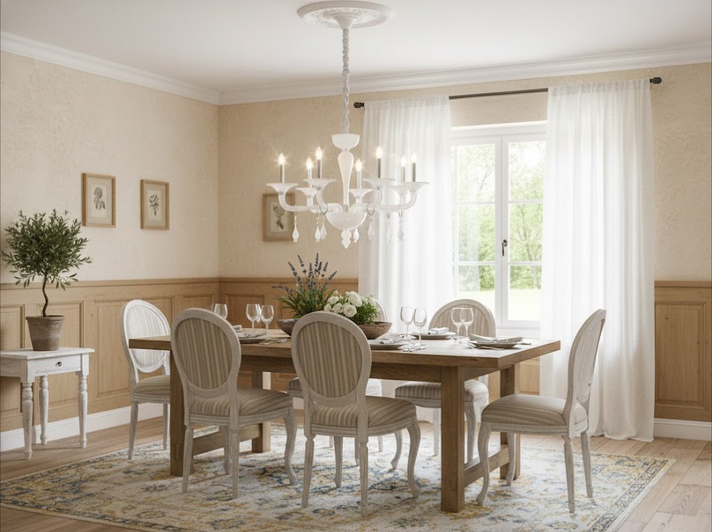 Благодаря чистому белому цвету и прозрачности стеклянных элементов, массивная конструкция диаметром 950 мм выглядит легкой и воздушной. Люстра богато декорирована подвесками и цепочками из граненого хрусталя, которые добавляют изделию блеска и торжественности. Эта модель на 8 ламп станет идеальным украшением для просторной гостиной, спальни или столовой в светлых тонах.