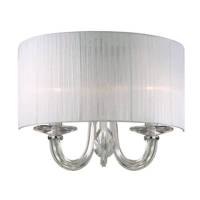 Декоративные элементы (центральная вставка и чаши-бобешки под патронами) изготовлены из прозрачного граненых хрусталя, который красиво преломляет свет. Металлические детали имеют хромированное покрытие, но практически скрыты за стеклом. Это бра станет утонченным украшением для интерьеров в стиле классика, прованс или шебби-шик, наполняя комнату свежестью и блеском.