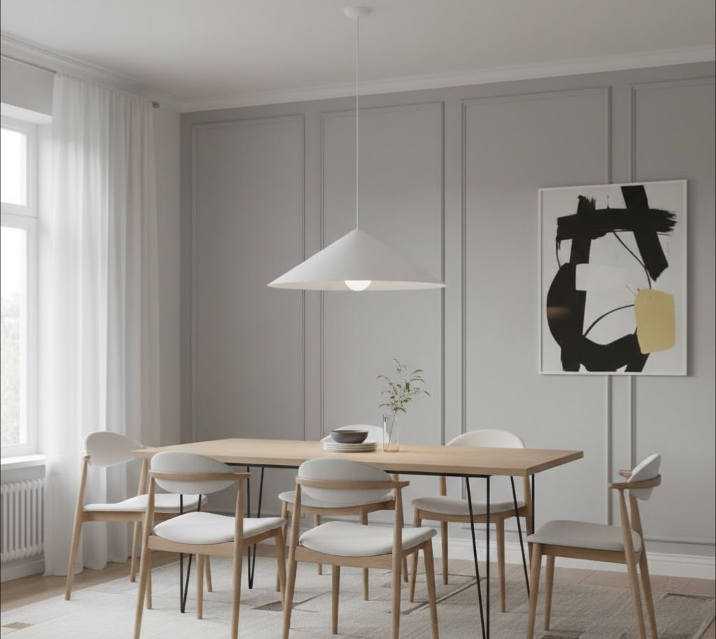 Благодаря своей форме и размеру, светильник создает широкий конус направленного света, что делает его идеальным решением для зональной подсветки: над обеденным столом, кухонным островом или в центре небольшой современной гостиной. Чистый белый цвет и отсутствие лишних деталей позволяют модели гармонично вписаться в интерьеры стилей сканди, лофт или хай-тек.