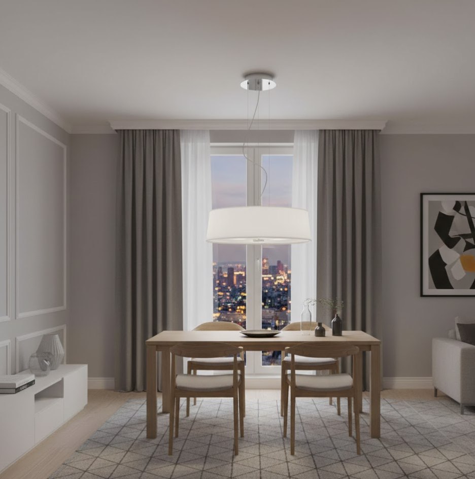 Текстиль придает светильнику визуальную легкость и обеспечивает мягкое, равномерное рассеивание света, создавая уютную атмосферу. Благодаря диаметру 500 мм, эта модель станет гармоничным центром спальни, гостиной или обеденной зоны. Использование цоколя E27 делает светильник практичным и удобным в эксплуатации.