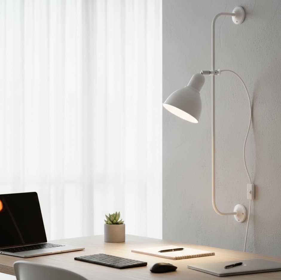 Конструкция оснащена поворотным механизмом, позволяющим менять угол наклона плафона и направлять световой поток в нужную зону. Использование стандартного цоколя E27 делает эту модель универсальной: вы можете установить лампу-спот (рефлекторную) для акцентного освещения или обычную лампу для более мягкого света. Светильник идеально подходит для подсветки зеркал, картин, рабочих поверхностей или использования в качестве бра для чтения в спальне.