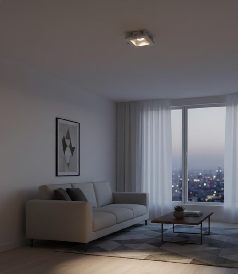 Kvadro 002 — это встраиваемый точечный светильник квадратной формы, предназначенный для скрытого монтажа (Trimless) в подвесные потолки из гипсокартона.