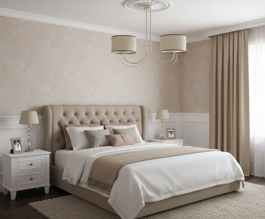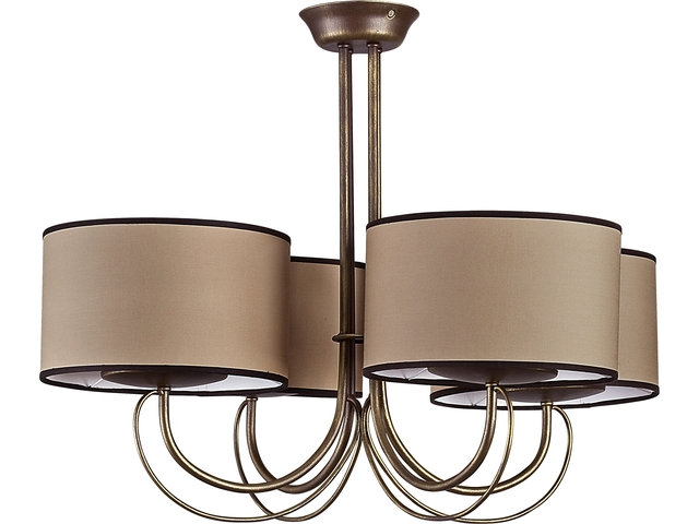 Люстра имеет 2 рожка, каждый из которых украшен классическим тканевым плафоном. Текстиль мягко пропускает свет, наполняя комнату теплым, рассеянным свечением. Высота корпуса 540 мм и компактная конструкция на 2 лампы делают эту модель идеальной для освещения небольших помещений: спальни, детской комнаты, прихожей или уютной обеденной зоны.
