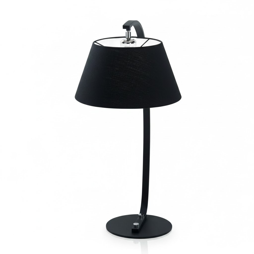 Настольная лампа PAGODA TL1 NERO 57781 от известного итальянского бренда Ideal Lux — это стильный элемент интерьера, сочетающий в себе классическую форму и современные материалы. Модель установлена на устойчивое круглое металлическое основание черного цвета.