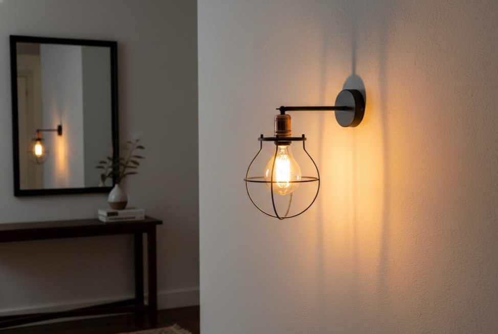 Настенный светильник MANUFACTURE I 9742 от Nowodvorski — это яркий представитель индустриального стиля (лофт). Модель отличается характерным дизайном: плафон выполнен в виде проволочной клетки из черной стали, внутри которой расположен патрон цвета меди (античная латунь). Такая открытая конструкция не скрывает источник света, превращая саму лампу в центральный элемент декора. Бра идеально подходит для брутальных интерьеров, оформления кирпичных стен в гостиных, коридорах, кафе или барбершопах.