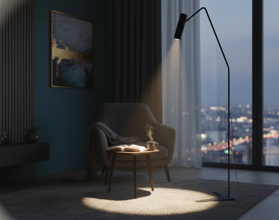 Торшер EYE 6506 от польского бренда Nowodvorski — это воплощение элегантности и функциональной простоты. Выполненный в стиле минимализм, он представляет собой тонкий графичный силуэт, который не перегружает пространство, а лишь подчеркивает его архитектурность.