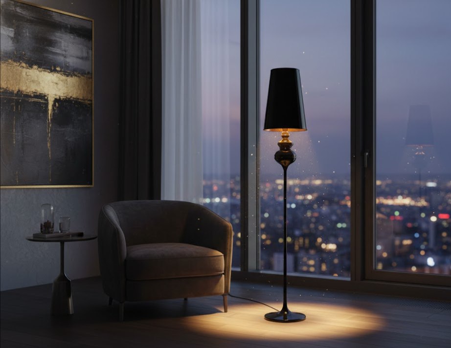 Торшер Alaska от польского бренда Nowodvorski — это воплощение элегантного минимализма и функциональности. Его тонкий, изящный силуэт в глубоком черном цвете увенчан текстильным абажуром, который мягко рассеивает свет, создавая атмосферу уюта и камерности. Особенностью этой модели является дополнительное регулируемое «плечо» с узким спотом, что делает торшер идеальным спутником для зоны чтения, позволяя совмещать мягкий фоновый свет с направленным потоком.