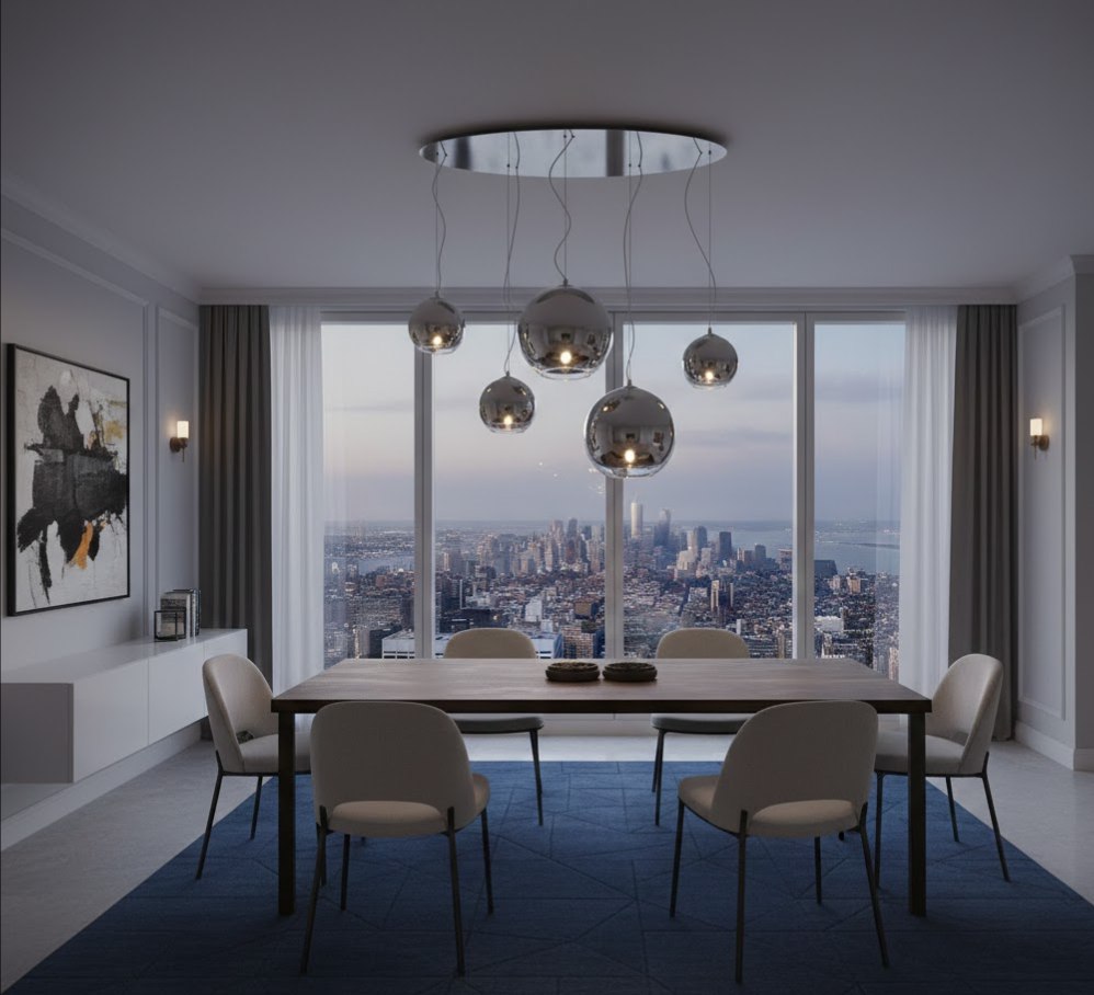 Плафоны изготовлены из дутого стекла с зеркальным хромированным напылением и декоративной прозрачной полосой в нижней части. В выключенном состоянии они работают как стильные зеркальные шары, отражая интерьер, а при включении мягко пропускают свет. Благодаря линейной форме, эта модель идеально подходит для освещения обеденного стола, кухонного острова или барной стойки.