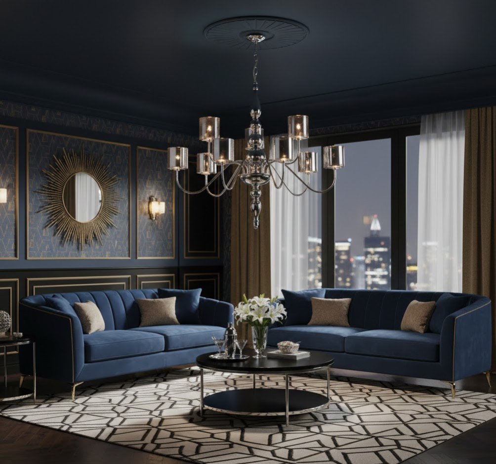 Центральный шток и элементы рожков декорированы прозрачным стеклом, что добавляет массивной конструкции на 9 ламп визуальную легкость и воздушность. Гармоничное сочетание холодного хрома и чистого стекла создает игру отражений, делая эту модель роскошным центром гостиной, просторной столовой или холла.