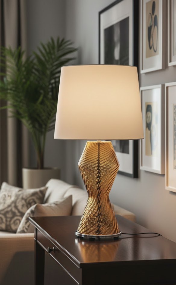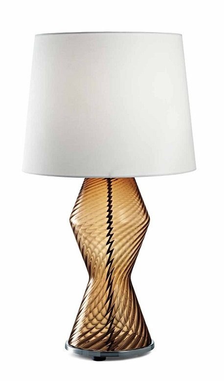 Основание лампы изготовлено вручную из подлинного муранского стекла в глубоком и теплом янтарном оттенке. Уникальная фактура стекла создает неповторимую игру света и тени, подчеркивая статус изделия. Элегантный текстильный абажур мягко рассеивает свет, создавая в помещении атмосферу уюта и благородного спокойствия. Эта лампа идеально дополнит интерьеры в стиле неоклассика, ар-деко или современный премиум.