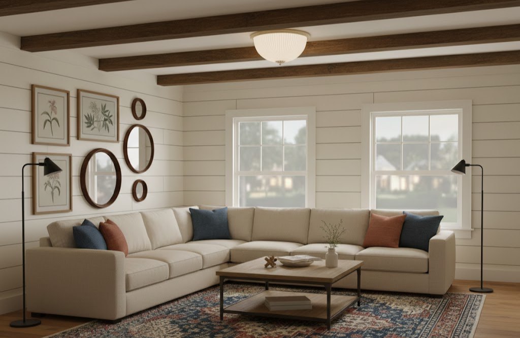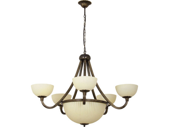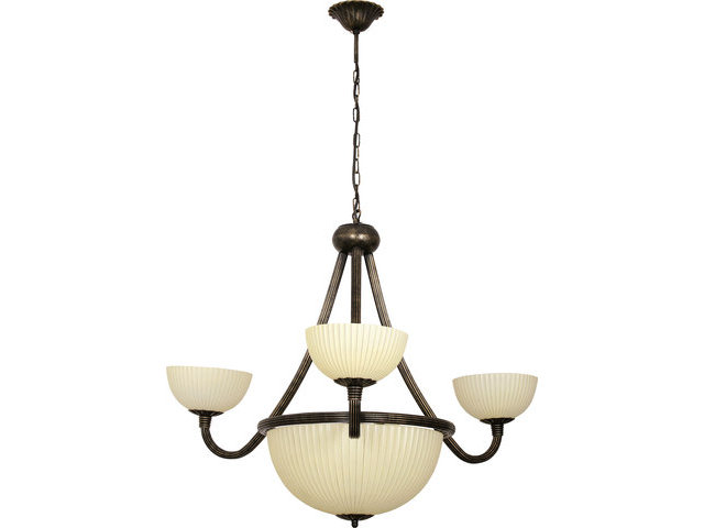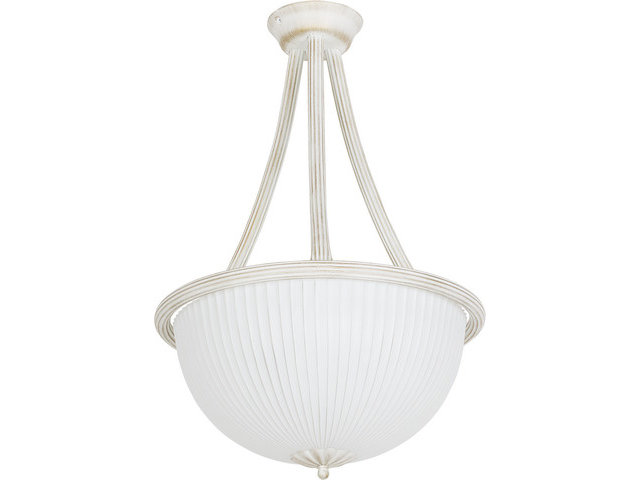 Светильник представляет собой закрытую конструкцию: основание выполнено из металла белого цвета, а рассеиватель — из матового или текстурированного стекла. Такой дизайн обеспечивает широкое распространение мягкого света и защищает источники света от пыли. Благодаря диаметру 380 мм и наличию патронов E27, плафон обеспечивает достаточное количество света для прихожих, кухонь, ванных комнат или небольших спален, оформленных в традиционном или неоклассическом стиле.