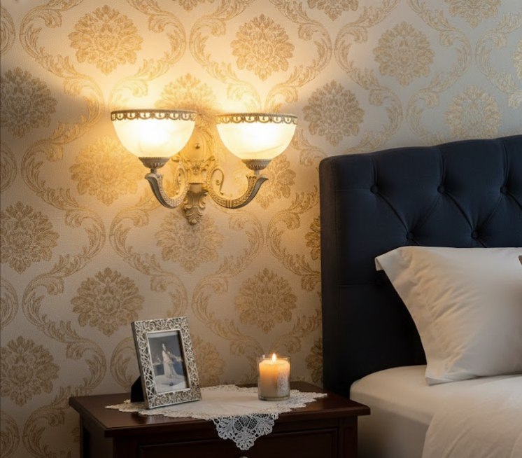 Два плафона из белого матового стекла в форме цветочных бутонов мягко рассеивают свет, направляя его вверх и в стороны. Благодаря двум источникам света, это бра обеспечивает более яркое и равномерное освещение, что делает его отличным выбором для просторных гостиных, классических залов или размещения над широкими предметами мебели.