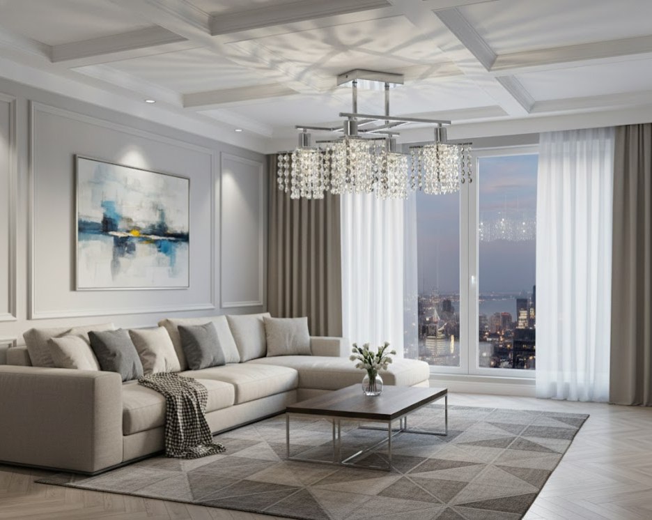 Главное украшение модели — декоративные подвески из прозрачного хрусталя (или хрустального стекла), которые красиво преломляют свет от 4 ламп, создавая в комнате игру бликов. Благодаря компактной высоте 280 мм и потолочному типу крепления, эта люстра идеально подходит для помещений со стандартными или низкими потолками, не загромождая пространство. Отличный выбор для гостиной, спальни или прихожей.