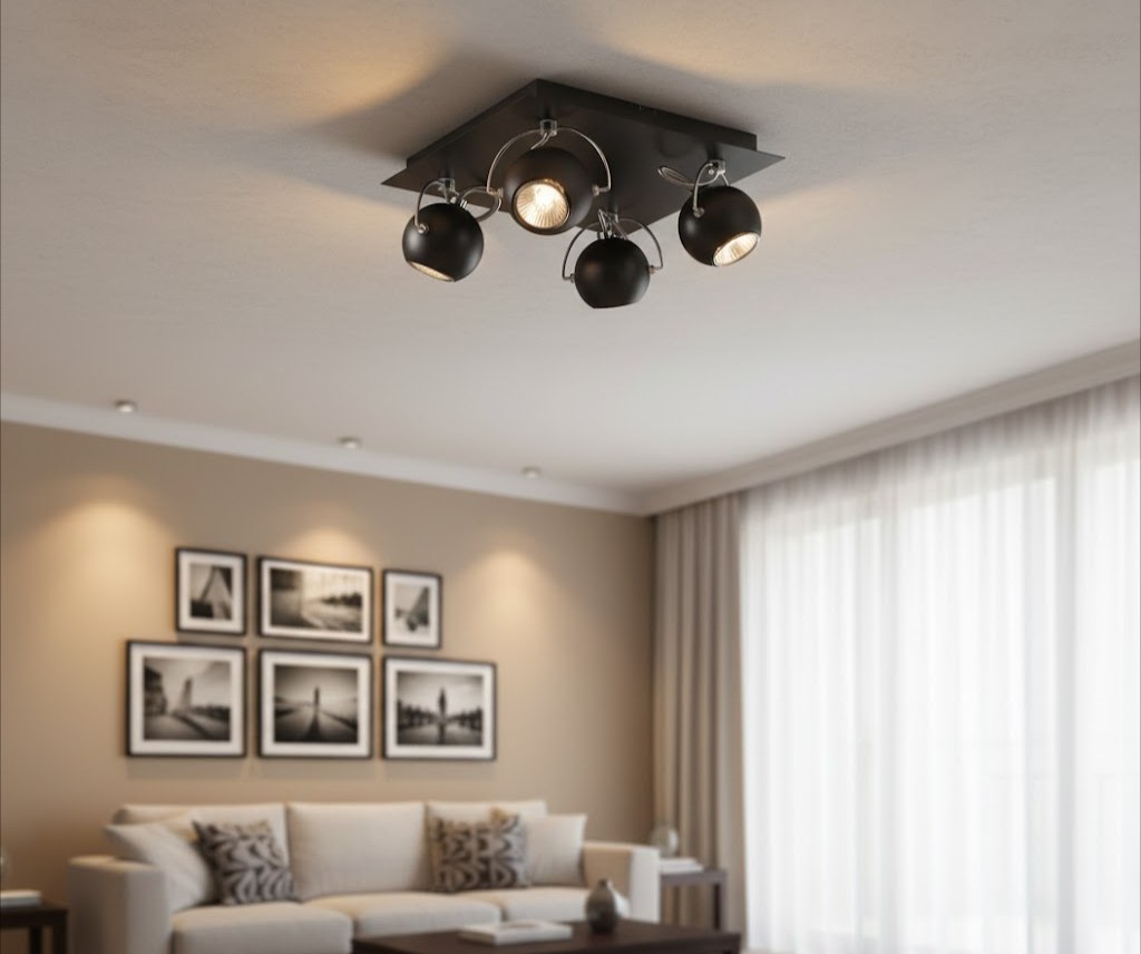 Потолочный светильник LUNARE PL4 CROMO 66820 от итальянского бренда Ideal Lux — это стильный и функциональный спот в стиле хай-тек. Модель отличается строгой геометрией и предназначена для основного освещения в современных интерьерах. Светильник представляет собой квадратное или круглое основание диаметром 290 мм, выполненное из прочного металла с отделкой цвета хром (зеркальный, блестящий серебристый цвет). На основании расположены четыре подвижных плафона (спота) с цоколем GU10. Благодаря возможности регулировки направления света, светильник позволяет эффективно зонировать пространство и создавать акценты. Идеально подходит для кухонь, гостиных и кабинетов.