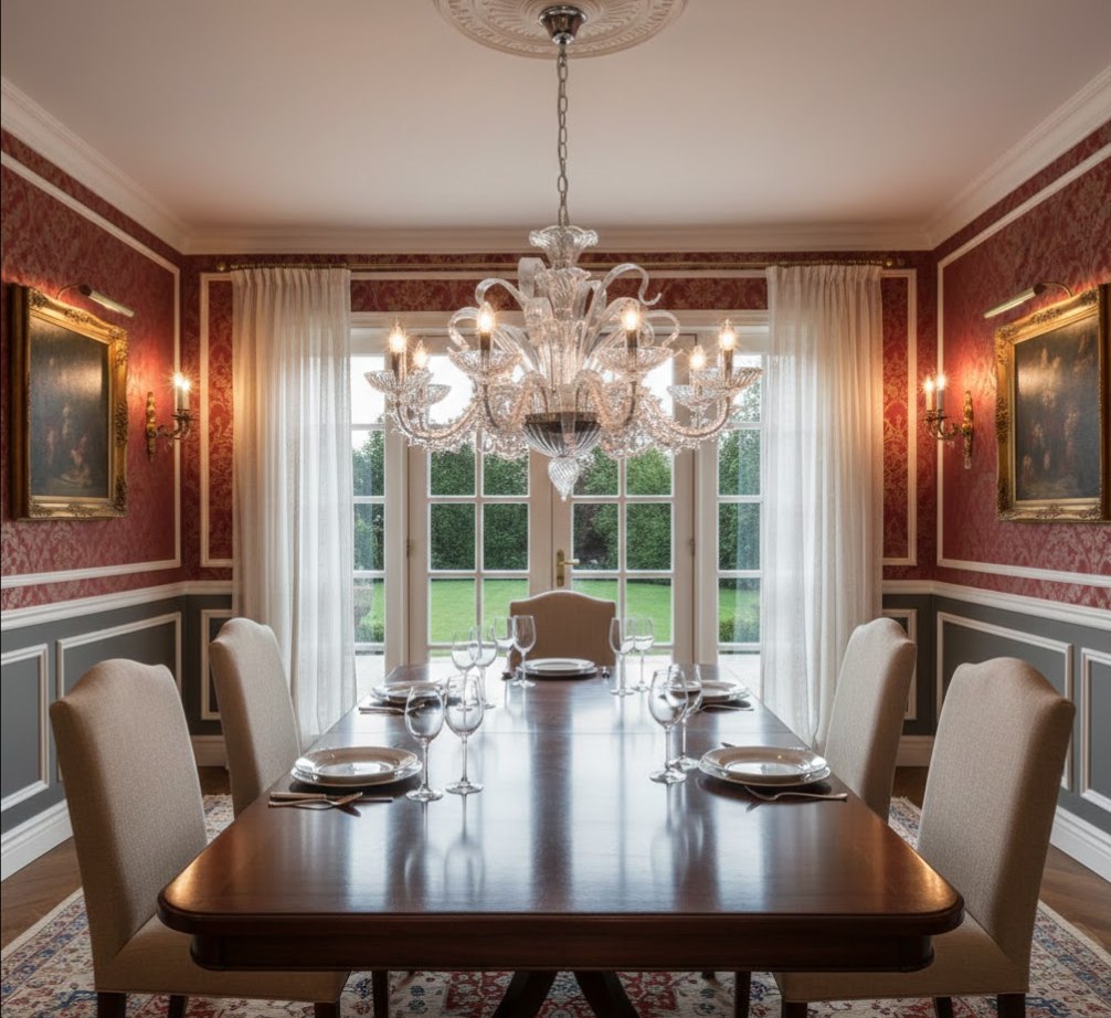 Светильник богато декорирован чашами и подвесками из прозрачного граненого хрусталя, создающими великолепную игру света и радужные блики. Цепь подвеса скрыта в бархатном чехле, что добавляет изделию премиальности. Эта модель на 8 рожков станет роскошным украшением гостиной, парадной столовой или просторной спальни.