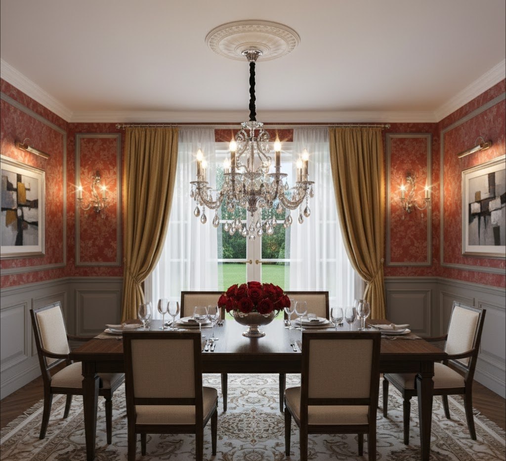 Люстра богато декорирована каскадами подвесок из прозрачного граненого хрусталя (октагоны и капли), которые великолепно преломляют свет, наполняя комнату торжественным сиянием. Особый шарм модели придает цепь подвеса, скрытая в бархатном чехле серебристого цвета. Внушительный диаметр 730 мм и 8 рожков делают эту люстру идеальной доминантой для просторной гостиной, парадной столовой или большого холла.