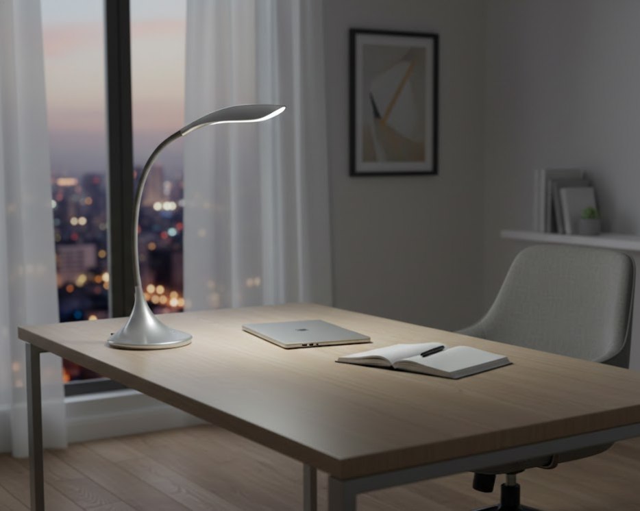 Настольная лампа ARUBA SILVER 6272 от польского производителя Nowodvorski — это современный рабочий инструмент, сочетающий в себе функциональность и стиль хай-тек. Светильник выполнен в серебристом цвете, что делает его идеальным дополнением для рабочего стола, окруженного современной техникой (ноутбуками, мониторами). Главное преимущество модели — гибкая ножка («гусиная шея»), которая позволяет легко и точно регулировать направление и высоту светового потока. Встроенный светодиодный модуль обеспечивает яркое и экономичное освещение, необходимое для продуктивной работы или учебы.