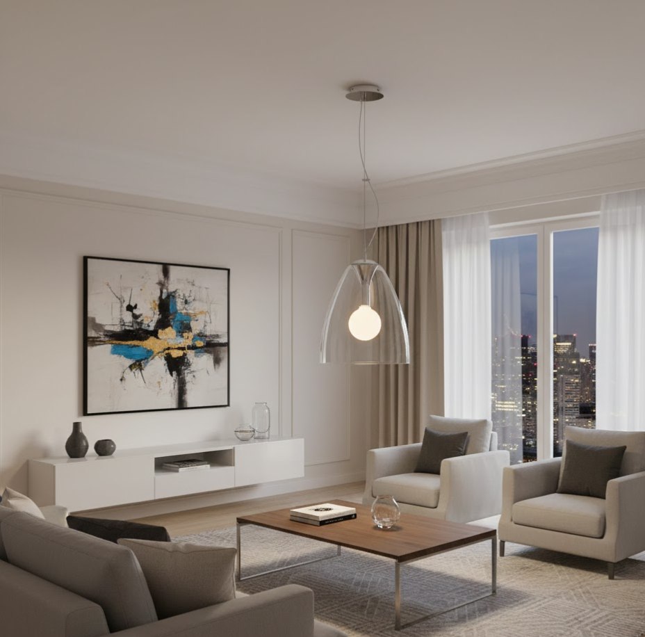 Плафон изготовлен из высококачественного прозрачного дутого стекла эллипсовидной формы. Внутри стеклянного купола на подвесе расположен источник света. Благодаря абсолютной прозрачности плафона, светильник выглядит легким и невесомым, не перегружая пространство, и обеспечивает максимально яркое освещение. Эта модель диаметром 350 мм идеально подходит для освещения обеденной зоны, кухни, прихожей или спальни.