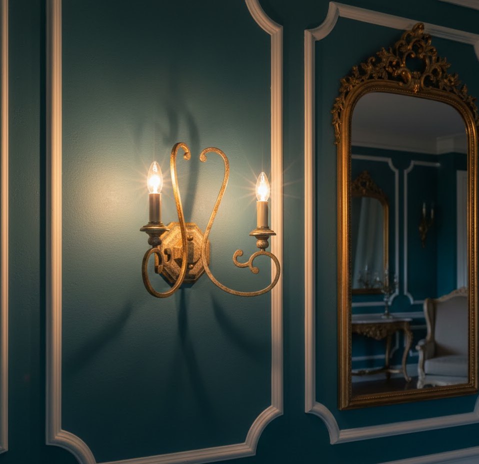 Бра Ideal Lux CORTINA AP2 – элегантный настенный светильник в классическом стиле, выполненный с эффектом состаренной позолоты. Изящные металлические завитки создают роскошный облик, а подсвечники с имитацией восковых свеч усиливают атмосферу дворцового интерьера. Светильник прекрасно дополнит гостиную, спальню, коридор или зону отдыха, подчеркивая винтажную эстетику и изысканный вкус владельца.