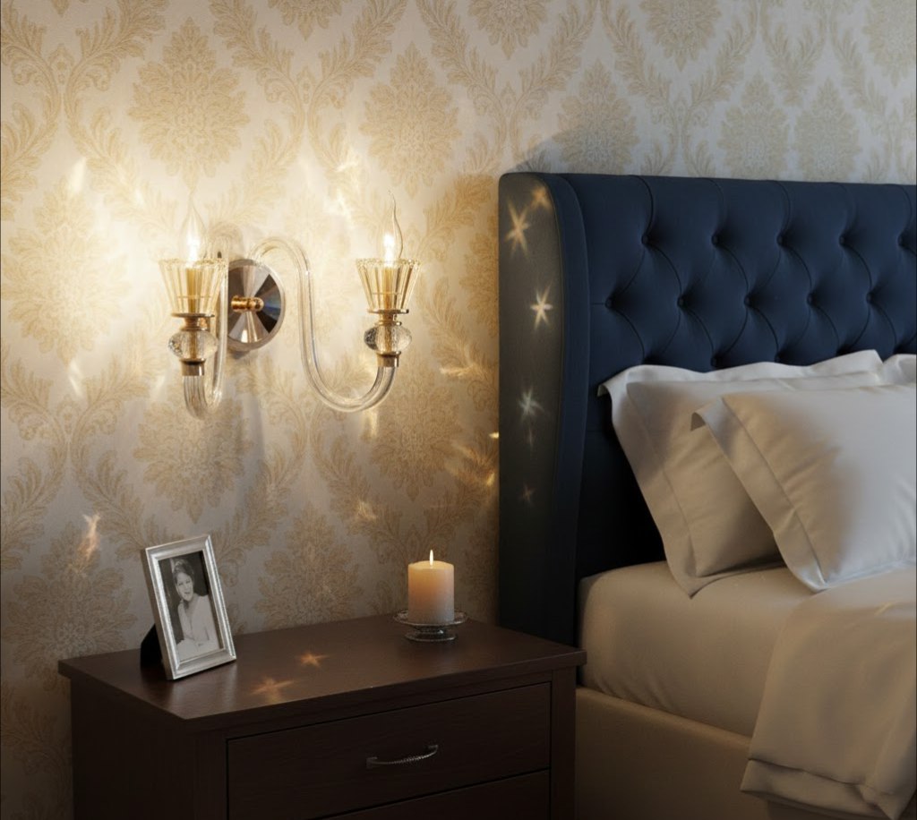 Главное украшение модели — чаши (бобешки) под патронами, выполненные из прозрачного граненого хрусталя. Они эффектно преломляют свет и придают конструкции завершенный, торжественный вид. Открытые лампы в форме свечей делают это бра идеальным дополнением для интерьеров в стиле классика, барокко или ампир, украшая стены гостиных, театров или просторных холлов.