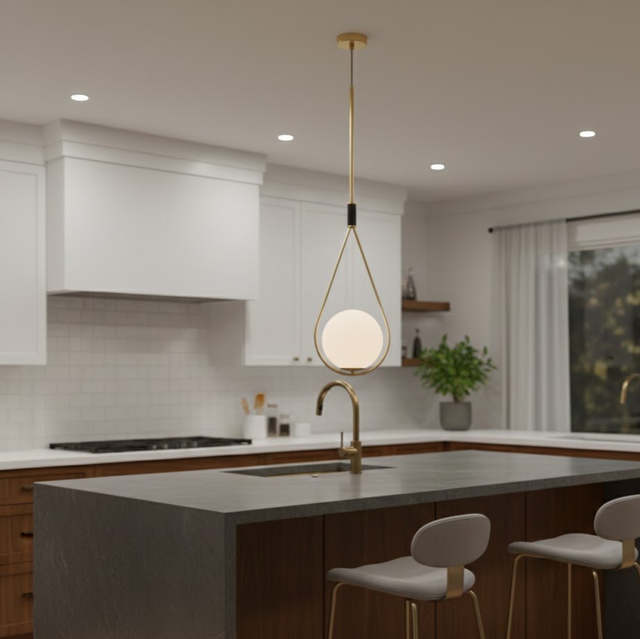 Подвесной светильник Odeon Light Flari 4810/1A — стильное решение для современного интерьера. Изящная конструкция в форме капли с золотым металлическим каркасом подчёркивает легкость дизайна, а матовый белый стеклянный шаровый плафон обеспечивает мягкое, комфортное освещение. Этот светильник станет выразительным акцентом в гостиной, столовой, спальне или стильном кафе.